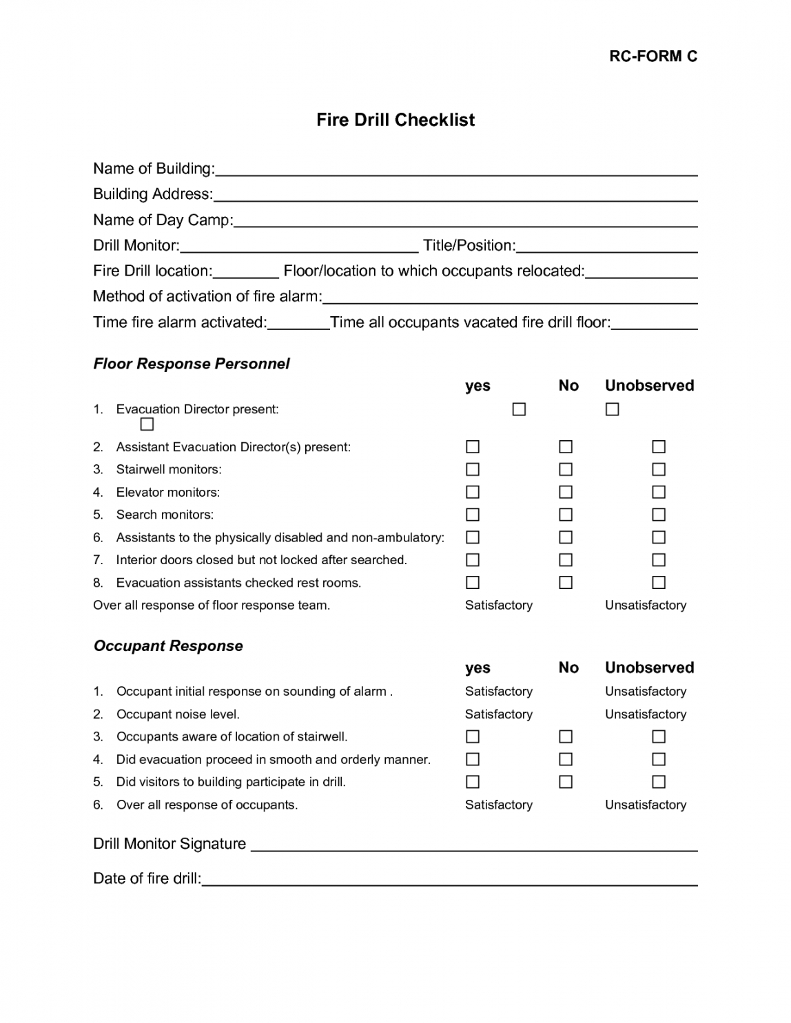 Fillable Online Free Fire Drill Checklist & TemplatePDF F…